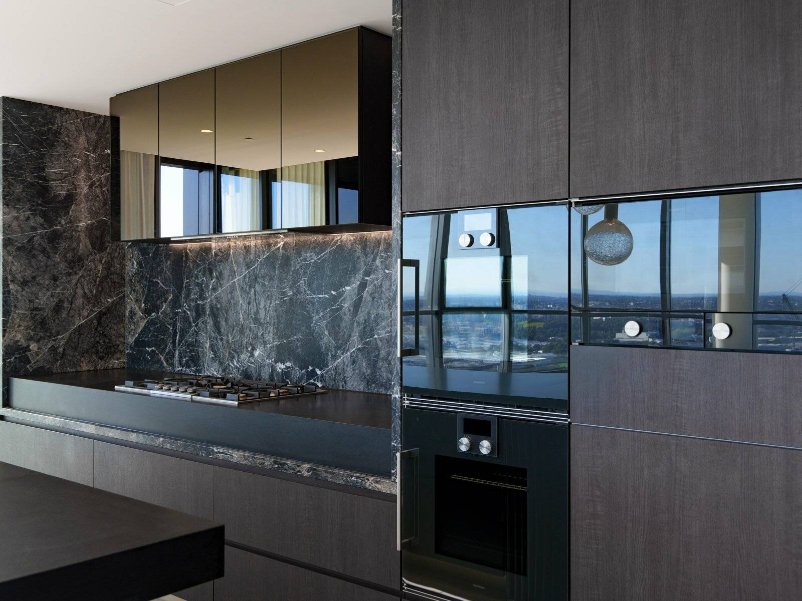 - Stunning gourmet kitchen with feature tinted mirror splashback and premium Gaggenau appliances, including five gas cooktops, dishwasher, ovens and steamer.