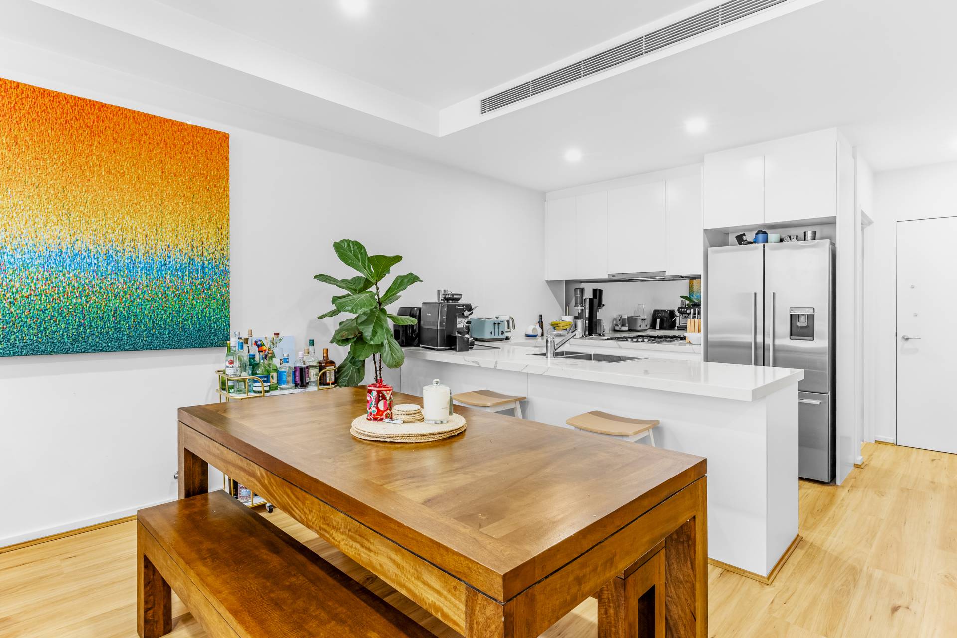 - Modern kitchen with Caesar stone benchtops and stainless steels appliances including dishwasher