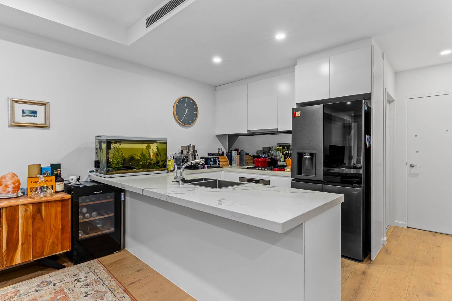 - Modern kitchen with Caesar stone benchtops and stainless steel appliances, including a dishwasher