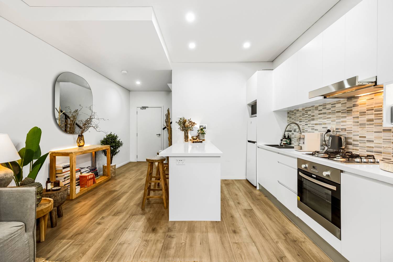 - Designer kitchen with stone benchtops with gas cooking and dishwasher