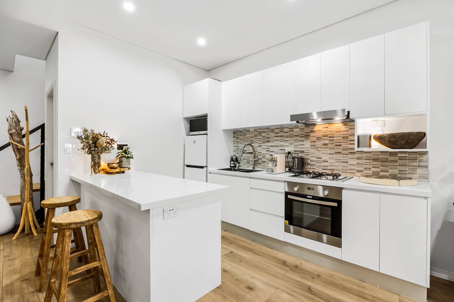 - Split level open plan living and kitchen on the bottom floor