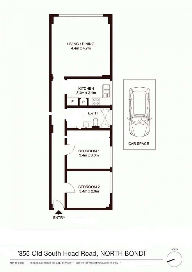 This updated two-bedroom apartment has an abundance of natural light and space. Soak in the liveliness of the local community, shops and eateries on your short stroll to the glorious water and sand of Bondi Beach. Entrance and parking is accessed via Gilgandra Road