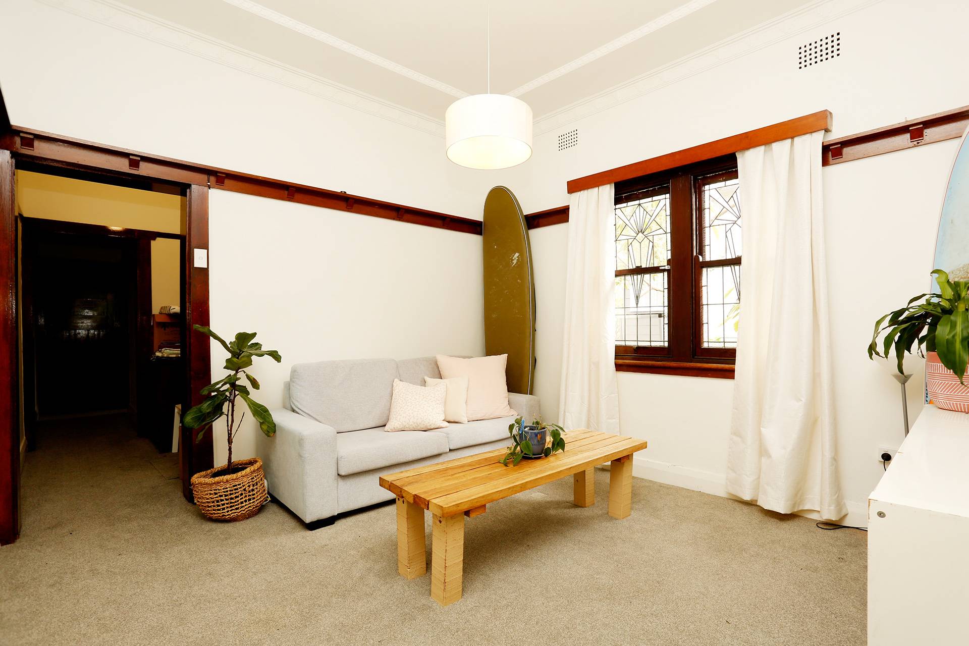 - Beautiful lounge room with period details glass